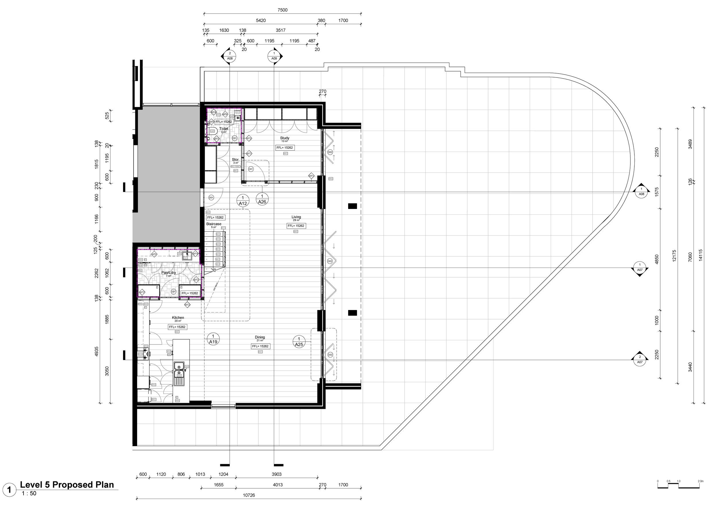 Custom-design and document all joinery throughout the apartment, including the kitchen, living areas, bedrooms, and wet areas.